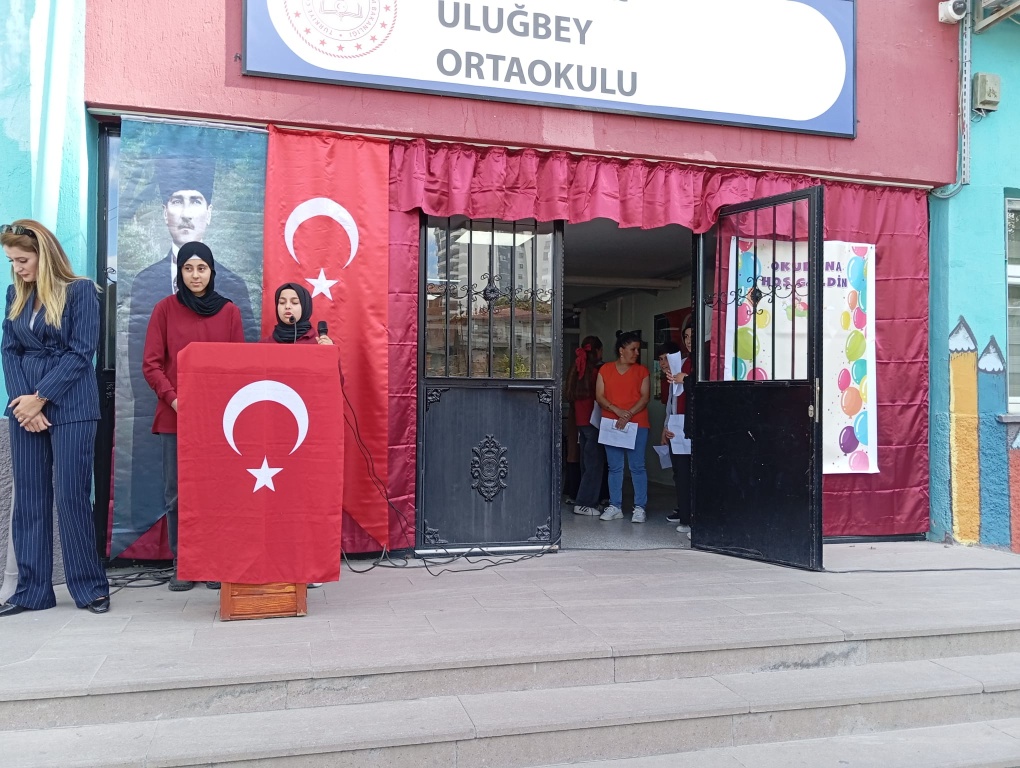 Saygı duruşu ve istiklal marşının okunmasının ardından okulumuz müdür yardımcısı İsmail KAYA'nın açılış konuşması ardından günün anlam ve önemini belirten konuşma ve şiir gösterimi ile programımız sona erdi.